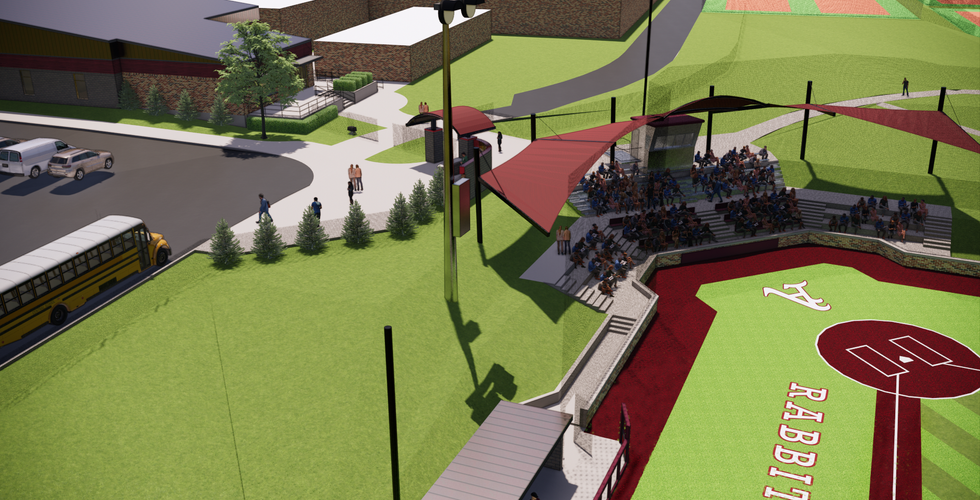 With a great baseball program, the District chose to do a baseball/softball complex because the school was previously renting fields from the City for practice and games. The new complex will include one baseball field, one softball field, stadium seating, shade structures for spectators, a press box, one softball batting cage and one baseball batting cage, each with four lanes. The fields will have artificial turf which will require less maintenance in the future than real grass. Netting will be installed between the stadium seating and the fields to protect spectators from foul balls. A "batter's eye" - a 20-ft structure behind the pitcher which improves the batter's ability to see the ball - will be installed on the outfield fencing.